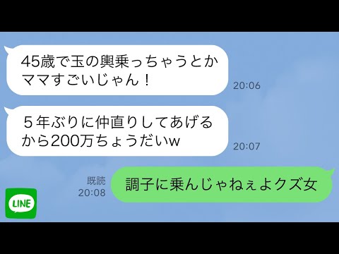 ラインで【LINE】浮気して私を捨てた夫の味方をした娘…5年後私が金持ちと再婚すると「仲直りしてあげるから200万よこせw」→心優しい連れ子がブチギレた結果www出てくると思わなかったわ