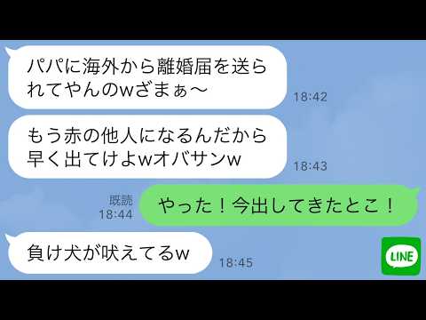 【LINE】海外赴任中の夫から離婚届が国際便で届くと夫の連れ子が大歓喜「パパがオバサン捨てるってw他人は出てけ!」→1時間後、ルンルン気分で離婚届を提出した結果www