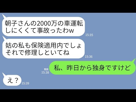 【LINE】温厚な嫁を舐めて2000万の高級車を勝手に乗り回して事故って修理代押し付ける姑「そっちで保険で直してねw」→離婚したので保険適応外だと伝えた時のクズ義母の反応がwww