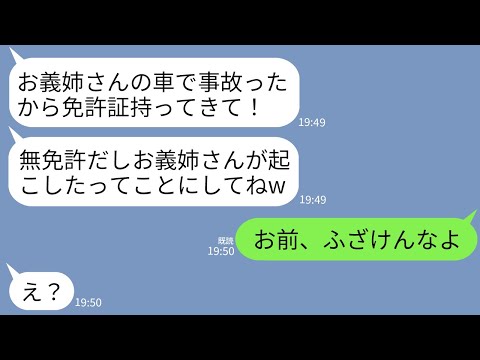 【LINE】無免許なのに私の車を勝手に乗り回して事故った義妹。義妹「内定決まってるしあんたがやったことにしてw」→調子の良すぎるクズ女に本気の制裁をした結果www