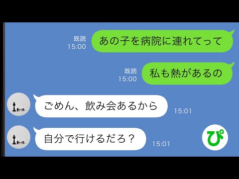 【LINE】熱がある私と息子を放置する夫「飲み会あるからごめん!」→帰ってきた夫が青ざめる結果に…【スカッと修羅場】って動画が話題らしいぞ