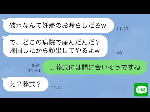 【LINE】破水した嫁を放置して浮気旅行に行くクズ夫「汚ねぇから1人で産めw」→帰国後の旦那が金、家族、居場所全てを失った時の反応がwww