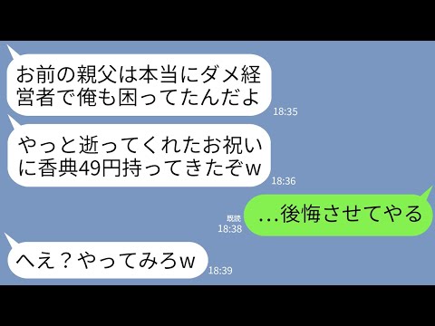 ラインで【LINE】社長だった父の葬儀に担当銀行員が来て香典49円を投げつけてきた…。銀行員「赤字続きのダメ経営者がw」→調子に乗るクズを本気で後悔させてやった結果www出てくると思わなかったわ