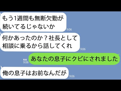 【LINE】社長の息子にクビにされた1週間後に社長「なんで出社しないんだ?」→事情を説明すると驚きの事実が明らかになって…