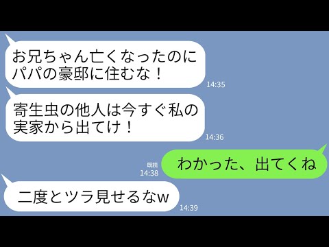 【LINE】私がお情けで6LDKの豪邸に義両親を住ませていると知らずに殴って追い出した義妹「寄生虫は出ていけ!」→お望み通りに無職の義両親を置いて出ていった結果www