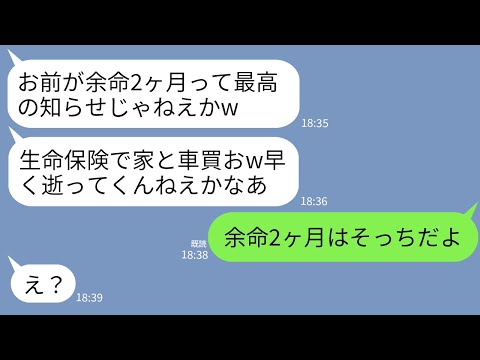 【LINE】私が余命2ヶ月と知って大喜びする最低な夫「ラッキー!生命保険で家と車買うわw早く逝ってくれw」→実は末期がんなのは夫だと伝えた結果が…w