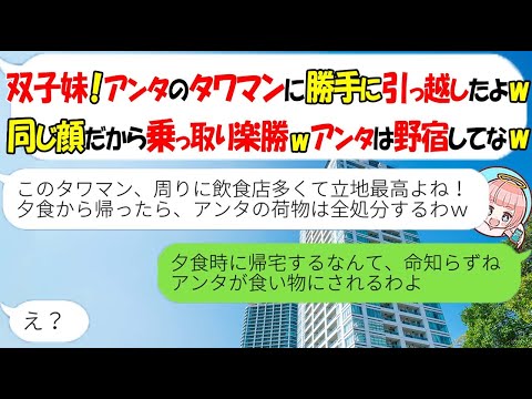 【LINE】私が契約したタワマンの部屋に無断で引越しした双子の姉「アンタはその辺の公園で野宿してろw」→非常識な姉にある事実を伝えた結果w【スカッとする話】