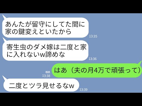 【LINE】私が家族全員を養ってると知らず出張中に鍵を勝手に家の鍵を変えた姑「寄生虫はもう帰ってくるなw」→私「夫の月4万で暮らせるかな」→そのまま家を出た結果…w