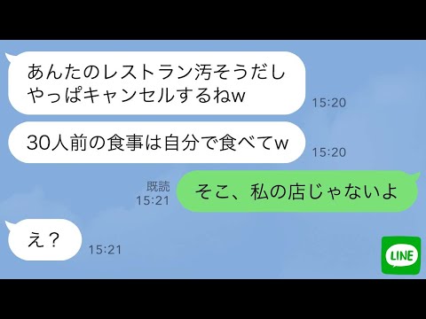 ラインで【LINE】私が経営する高級レストラン30人分の予約を当日ドタキャンしたママ友「店潰れちゃえw」→実は●●の店だと知ったDQN女が顔面蒼白…w出てくると思わなかったわ