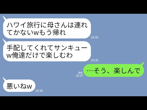 【LINE】私が計画したハワイ旅行なのに私だけ空港に置き去りにして旅行に行く息子夫婦「義両親と行ってくるわw」→速攻で宿泊先と帰りの便をキャンセルしてやった結果www