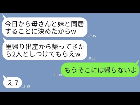 【LINE】私が里帰り出産中に勝手に新築一軒家に姑と義妹と招いて同居を始める夫「2人にお前もしつけてもらえw」→呆れた私がもう帰らないと伝えた時の自己中夫の反応がwww
