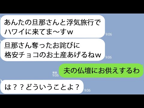 【LINE】私の夫と浮気旅行をしてるつもりの親友「ハワイ旅行中♡お土産にチョコ買ってあげるw」私「夫の仏壇にお供えするね」→実は…