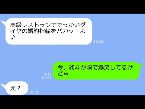 【LINEサロン】私の婚約者にプロポーズされたと勘違いした幼馴染から結婚連絡「アンタの彼氏、私に夢中よ~w」→私「隣で爆笑してるけど」DQN「え?」