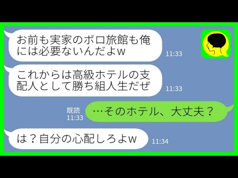 【LINE】私の実家の老舗旅館を継いだ夫が高級ホテルの令嬢と浮気して離婚届を突き付けてきた「ボロボロの旅館はさっさと潰れろw」私「そのホテル、大丈夫?」→その後、夫が嫁に土下座で懇願する理由がwww
