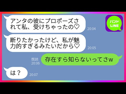 【LINE】私の彼にプロポーズされたと勘違いする妄想メンヘラ女「私が魅力的過ぎるんだって♡」私「アンタの存在すら知らないってw」→人違いなのに勝手に勝ち誇る勘違い女には天罰がwww【スカッとする話】 動画に良いな!と思った場合は高評価(グッドボタン)をお願いします♩