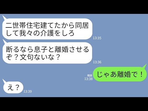 【LINE】私の承諾なく勝手に二世帯住宅建てて同居と介護を要求する義父「断るなら息子と離婚しろw 」夫「いいよな?」→即決で離婚を決めて出ていった結果www