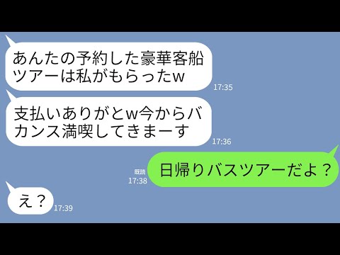 【LINE】私の行く予定だった豪華客船ツアーに先乗りし予約を奪った義姉「支払いサンキュー、最高のバカンスだわw」→ツアーはツアーでも私の予約したのは〇〇で…www