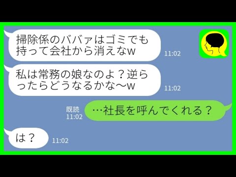 【LINE】私をパートの清掃員と勘違いして会社から追い出したコネ入社の新人女「汚いババァは出ていけw」私「社長を呼んでくれる?」→実は社長の姉で筆頭株主だった結果…www
