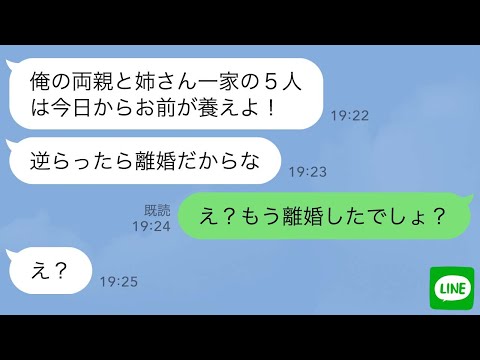 【LINE】突然、義両親と義姉一家を家に連れてきた夫「5人は今日からお前が養え!逆らったら離婚だ」→私「え?もう離婚したでしょ?」義家族「え?」