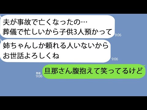 【LINE】突然子供3人を私に押し付けどこかに出発した妹「夫がなくなったの…少し面倒見て」→しかし一時間後、ボロボロの義弟が現れた事により妹の本当の目的が明らかになって…