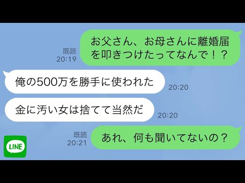 【LINE】突然母と離婚した父「あいつが俺の500万を勝手に使ったんだ」母を殴りつけて放り出した強気な父に私が“衝撃の事実”を突きつけた結果w【スカッとライン修羅場】