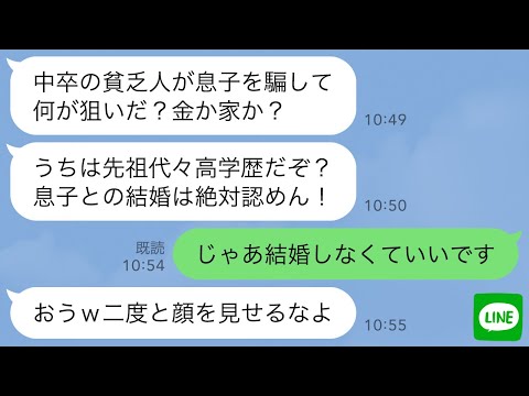 【LINE】結婚の挨拶で中卒の私にバケツの水をかけた学歴主義の義父「中卒の貧乏人なんて許さんw」→上から目線のDQN義父に“私の正体”を教えて立場大逆転した時の反応がwww