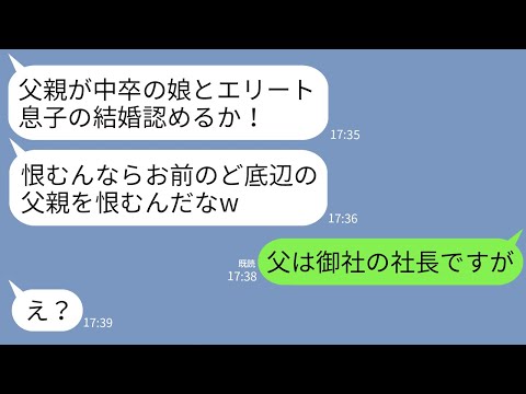 【LINE】結婚の挨拶で私の父が中卒と知ってお茶をぶっかけて追い返した婚約者父「底辺の血が入ると家が汚れるわ!」→エリート義父が父の正体を知った時の反応がwww