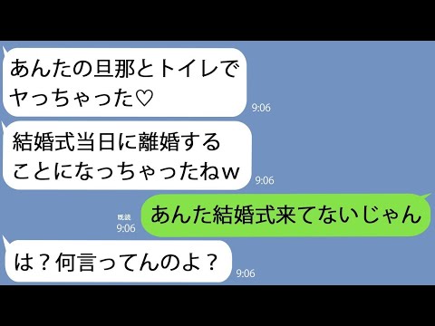 0:00【LINE】結婚式の二次会で私の夫を略奪宣言した幼馴染「あんたの旦那もらった?」→勘違いしてるみたいなので事実を教えてあげると…