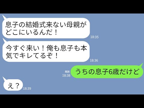 【LINE】結婚式当日、夫から怒りの連絡「息子の結婚式来ない母親がどこにいる!今すぐ来いクズ!慰謝料500万よこせ!」→私「うちの息子6歳だよね?」夫「え?」→衝撃の事実が…
