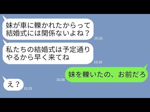 【LINE】結婚式当日に俺の妹を車で轢いてしらんぷりして式を強行するクズ婚約者「結婚式が優先でしょw」→バレてないと浮かれるクズ女が全てを失った結果www