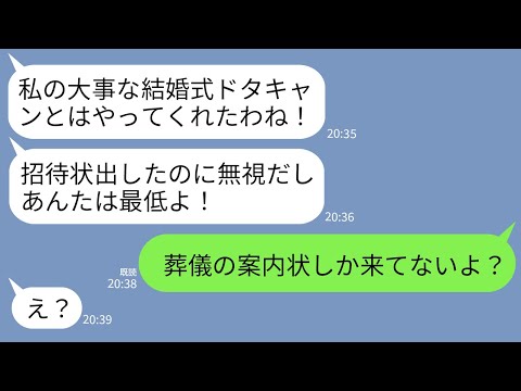 【LINE】結婚式当日に姉から怒りの連絡「式ドタキャンとか最低よ!」私「葬儀の案内状しか来てないけど」姉「え?」→アフォ姉のとんでもないミス発覚で大爆笑www