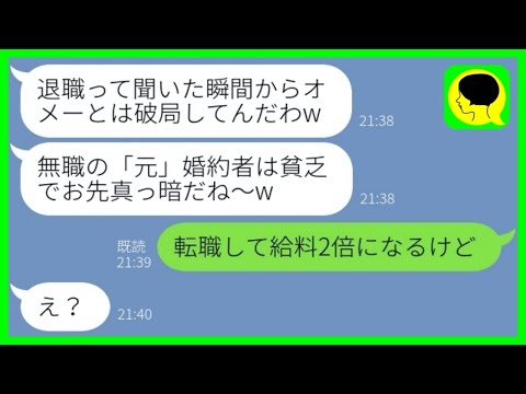 【LINE】結婚式直前に俺の退職を知って婚約破棄した女「無職と結婚?無理無理w」→浮気男に乗り換える女に退職の真相を伝えると慌ててUターン…wスカッとするライン動画配信中です!