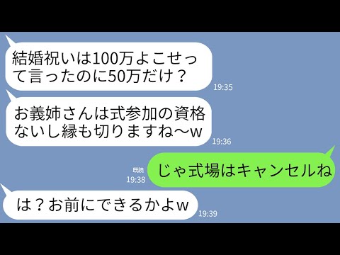 【LINE】結婚祝いに50万を贈った兄嫁に感謝もせず結婚式にも招待せず絶縁宣告する義妹「高卒に来られたら迷惑w」→お望み通りに絶縁したら義妹の式が大変なことにwwwって動画が話題らしいぞ