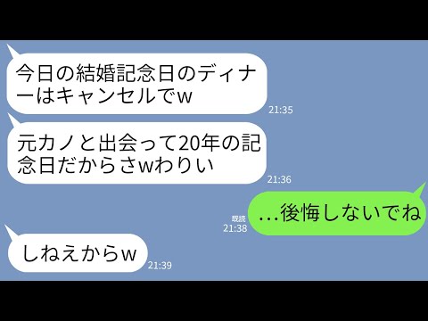 【LINE】結婚記念日当日に元カノを優先しディナーをドタキャンする夫「こいつと付き合って20年の日だからさw」→直後、クズ夫が全てを失って号泣することにwwwって動画が話題らしいぞ