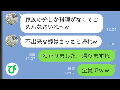 【LINE】義兄の息子の入学祝いで義実家に行くと私の分だけ料理がなかった→参加者全員が帰った結果ww【スカッと修羅場】って動画が話題らしいぞ