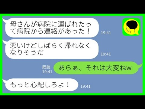 【LINE】義実家で夕飯を食べていると夫から突然の連絡「母さんが倒れた!しばらく家に帰れない」→私が驚かなかった理由は…って動画が話題らしいぞ