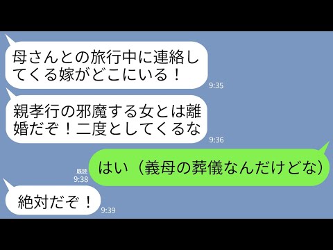 「母さんとの旅行中に連絡するな!親孝行の邪魔するなら離婚!」と命令してきて…。