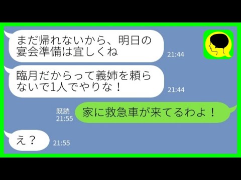 【LINE】臨月の私に夫の親族が20人集まる宴会の準備をさせる義姉「徹夜でやっといてw」姑「家に救急車が来てるわよ!」→実は…