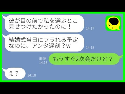 【LINE】自分が婚約者だと勘違いして結婚式当日に式場で待ち伏せする幼馴染「アンタ遅刻?w」→勘違い女にある事実を伝えた時の反応がwwwって動画が話題らしいぞ