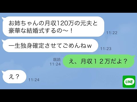 【LINE】自称天才の勘違い妹が中卒の私から夫を略奪「低学歴だし一生独身ねw」→結婚式当日、元旦那の真実を教えてあげたら妹の反応が…wって動画が話題らしいぞ