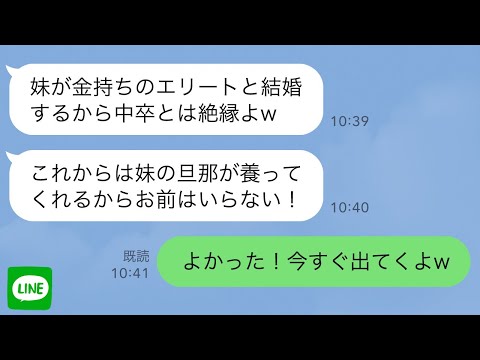 【LINE】親が無職で借金もあるため中卒で働いて家計を支えたのに妹が金持ちと結婚した途端に毒親「妹の旦那が養ってくれるからお前は絶縁w」→お望み通り絶縁してやった結果…
