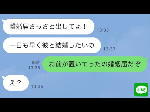 【LINE】記入済みの離婚届を置いて行った勘違い女の2週間後にワロタw【スカッとする話】【修羅場】