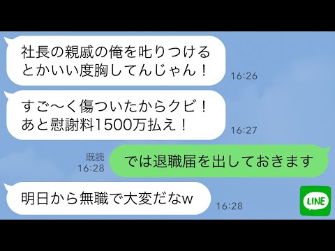 【LINE】遅刻を注意したら速攻で早退し慰謝料1500万要求するコネ入社3日目の新入社員「俺を叱ったお前はクビで~すw」→お望み通りに退職したら翌日500件の鬼電がwwwって動画が話題らしいぞ