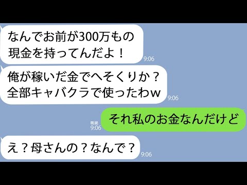 LINEで【LINE】銀行からおろした現金300万を奪った夫「俺に内緒でへそくりしやがって!」→アホ男が全額使い切った後に事実を伝えると…出てくると思わなかったわ