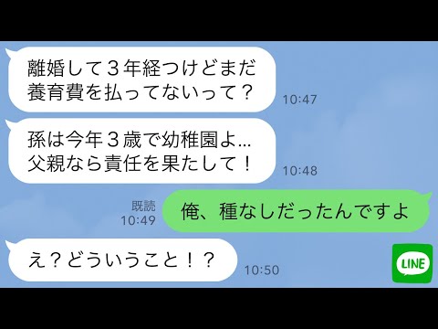 【LINE】離婚3年後に元義母から鬼LINE「父親なら娘の養育費払うのが常識!」→俺に子供ができるはずないので調べてみると元嫁の悪事が発覚し…って動画が話題らしいぞ