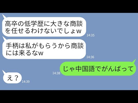 【LINE】高卒の私を見下して商談に参加させない自称帰国子女のウザい女先輩「低学歴に任せるかよw」→商談当日、学歴マウント女にある事実を伝えた時の反応がwwwって動画が話題らしいぞ