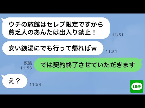 【LINE】高級旅館自慢のママ友「貧乏人は私の店に入るな!帰れ!」→私が来店した理由を伝えると女将は真っ青に…w【スカッとライン修羅場】って動画が話題らしいぞ