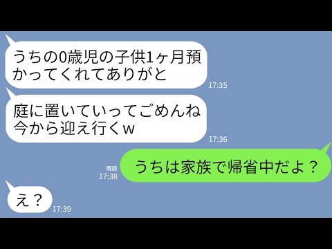 【LINE】0歳児を勝手にうちの庭に置き去りにした義妹→1ヶ月後、義妹「今日まで娘の世話ありがとw」→ 私「なんのこと?家族で帰省中だけど」義妹「え?」→衝撃の展開に…