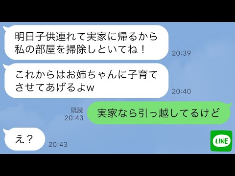 LINEで【LINE】1年前に私の夫を奪って絶縁した妹「旦那と別れたから実家帰るね!」→子連れで帰ってきた略奪女に“ある事実”を伝えた時の反応がwww出てくると思わなかったわ