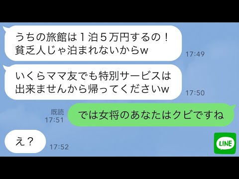 【LINE】15年目の結婚記念日に高級旅館に行くと女将のママ友から「貧乏人の予約はキャンセルした!帰れ!」→勝ち誇るママ友が私の正体を知ると鬼電してきて…wって動画が話題らしいぞ